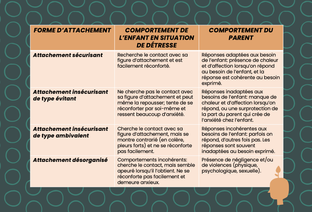 Rédigé par Laurence Morency-Guay. Mars 2020. – Mention spéciale à Natalie Chaloux; ma professeure, ma collègue, ma mentor et amie, celle qui m’a tout appris et qui m’a transmis cette passion pour la psychologie, pour le développement humain, et pour le concept de l’attachement, qu’elle enseigne si bien.