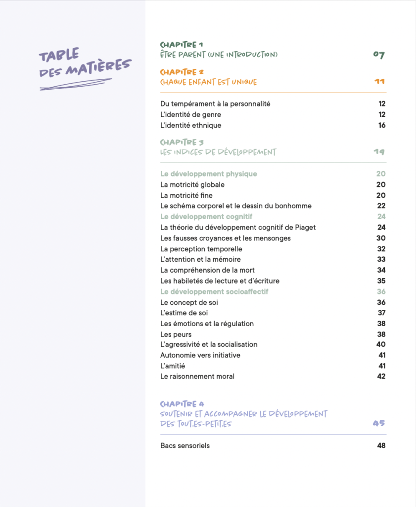 J’ai rédigé chaque mot avec soin; en prenant le temps de cibler les concepts qui seraient pertinents aux parents ou tout autre personne s’intéressant au développement de l’enfant et de les expliquer de manière imagée. J’avais en tête une lecture légère, mais instructive. Je crois avoir réussi à écrire un livre complet qui permettra de mieux comprendre l’évolution d’un enfant entre 3 et 5 ans, en inspirant certaines pratiques et interventions! Bonne lecture!